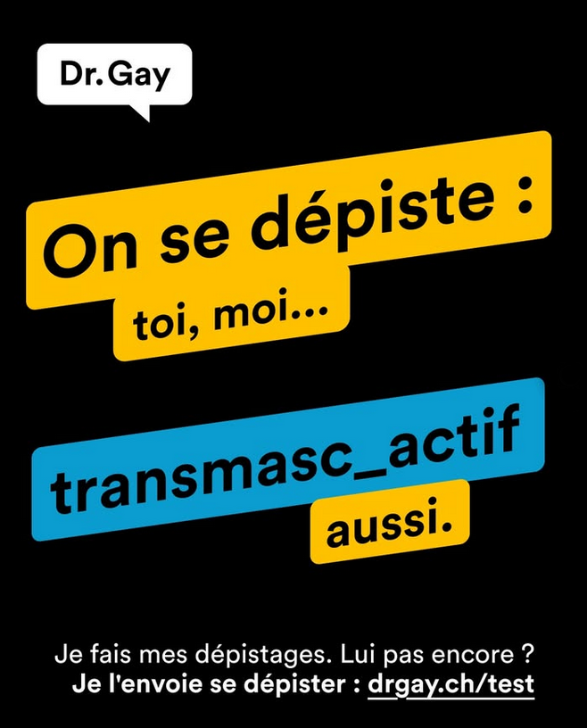 C’est pourquoi l’Aide Suisse contre le Sida recommande à tous les hommes ayant des rapports sexuels avec des hommes et les personnes trans de faire des contrôles réguliers pour le VIH, la syphilis, la gonorrhée et la chlamydia, même en l’absence de symptômes.