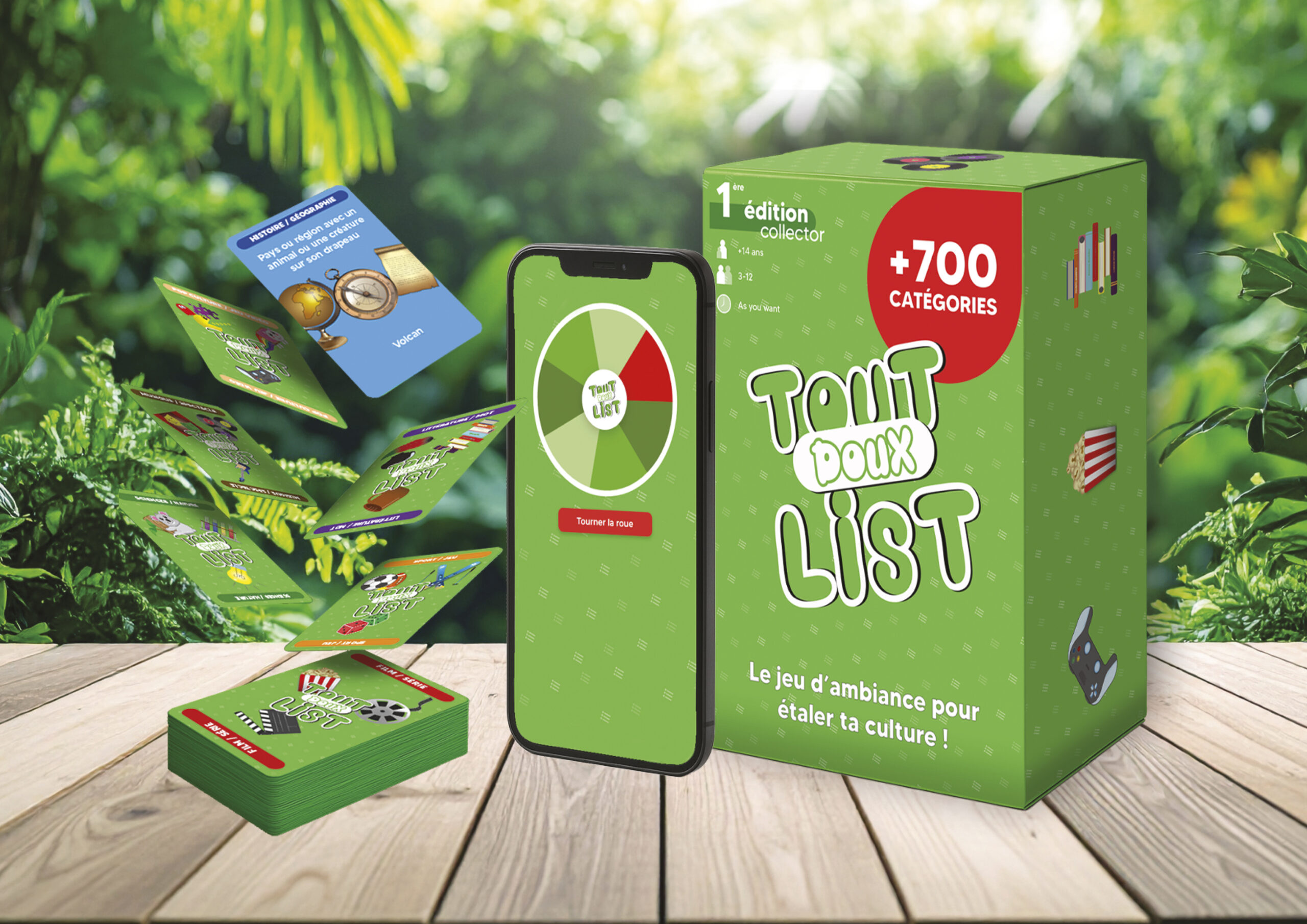 Tout Doux List est un jeu d’ambiance et de culture générale. Le principe est de citer des listes d’objets correspondant à la carte catégorie que vous avez choisie en ne connaissant que le thème. Attention au chronomètre et au point de pénalité en cas d’erreur. À chaque tour, c’est une application web de type «roue de la chance» qui détermine l’un des 7 modes de jeu !